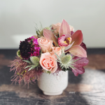 Our DESIGNER'S CHOICE signature arrangements are individually designed based on the size you’ve chosen. We'll be using our favorite combinations from the selection of flowers we have in the shop that day. Colors vary. Photos are examples only