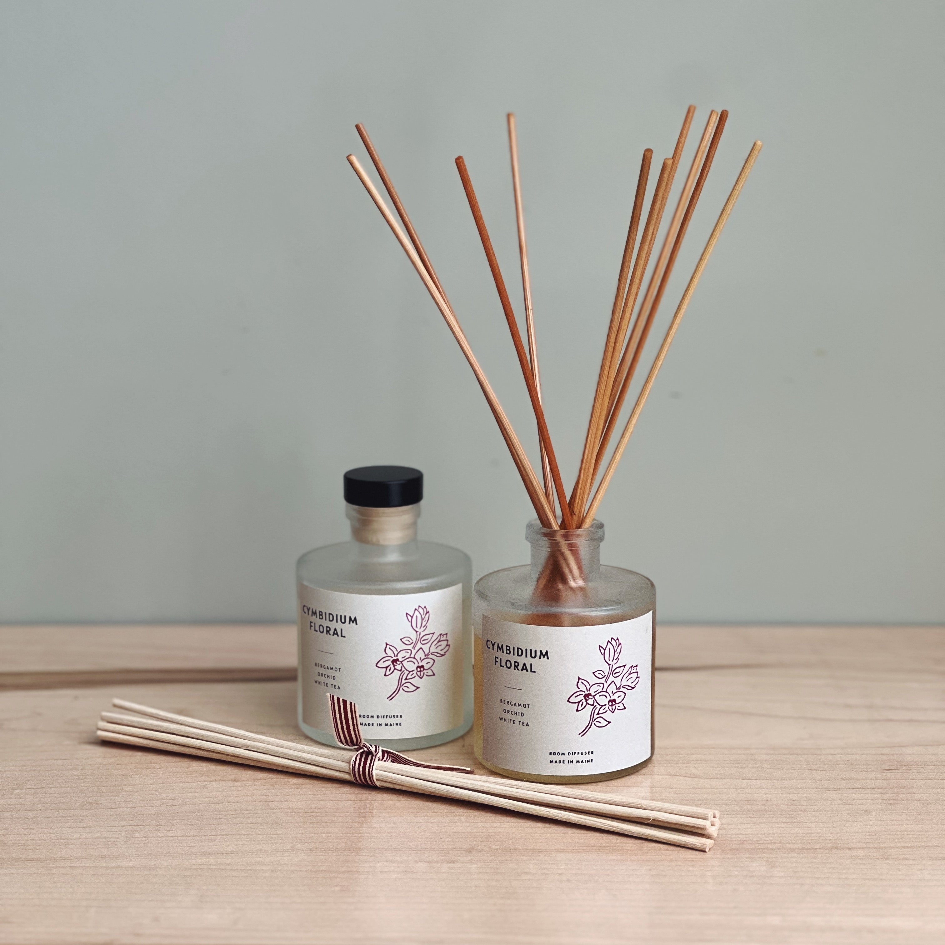 Liven up your space with a beautifully scented diffuser.  Made from simple and clean ingredients and packaged in a frosted glass bottle with bamboo reeds, these are perfect for the home or office. This softly floral and lightly sweet collaborative scent is inspired by the Cymbidium Orchid. A complex blend of bergamot and sea salt with a fresh green floral and white tea core, sweetened with clover honey at the base.
