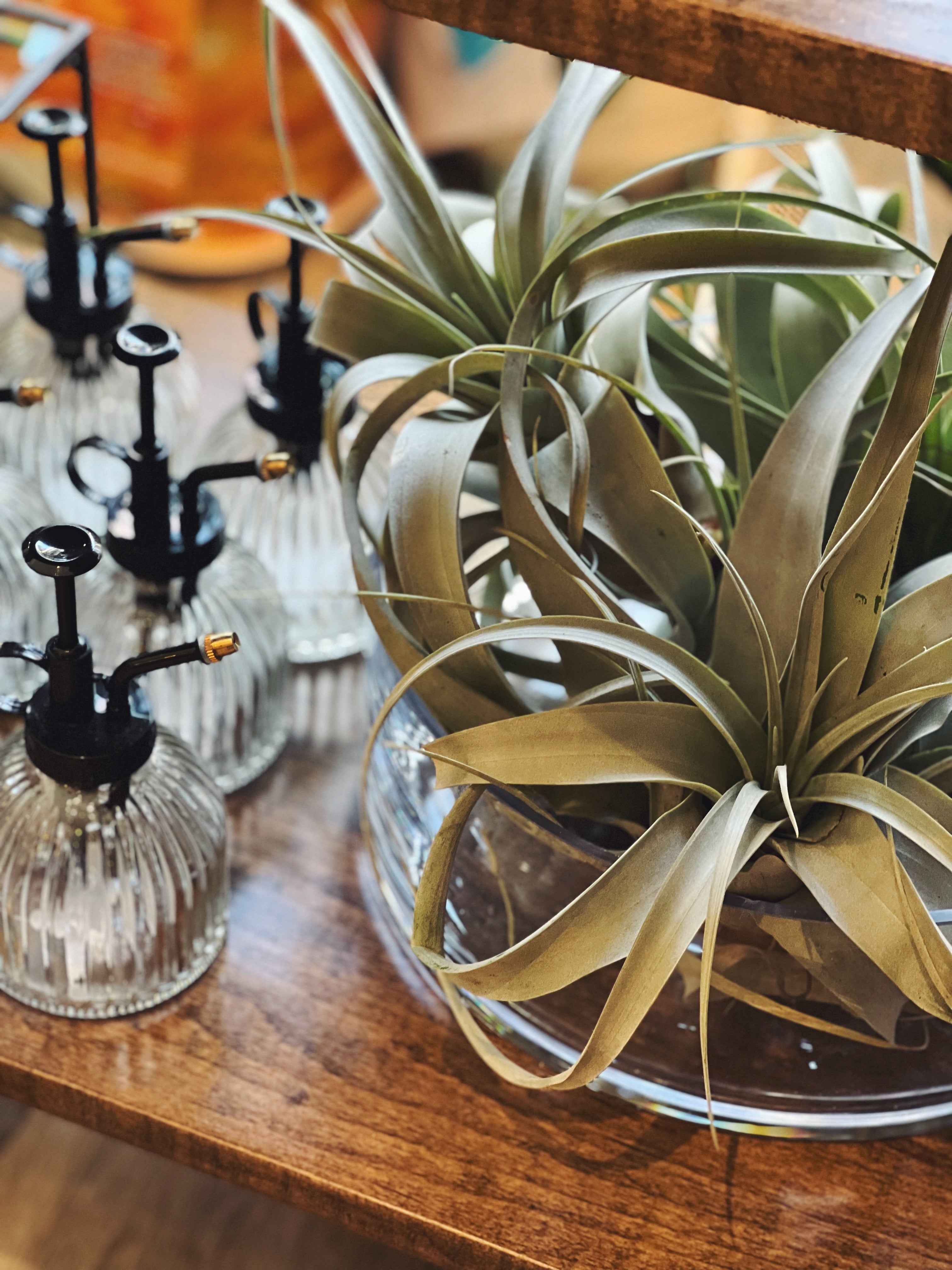 Air plants (tillandsia) grow without soil, receiving water & nutrients through their leaves.